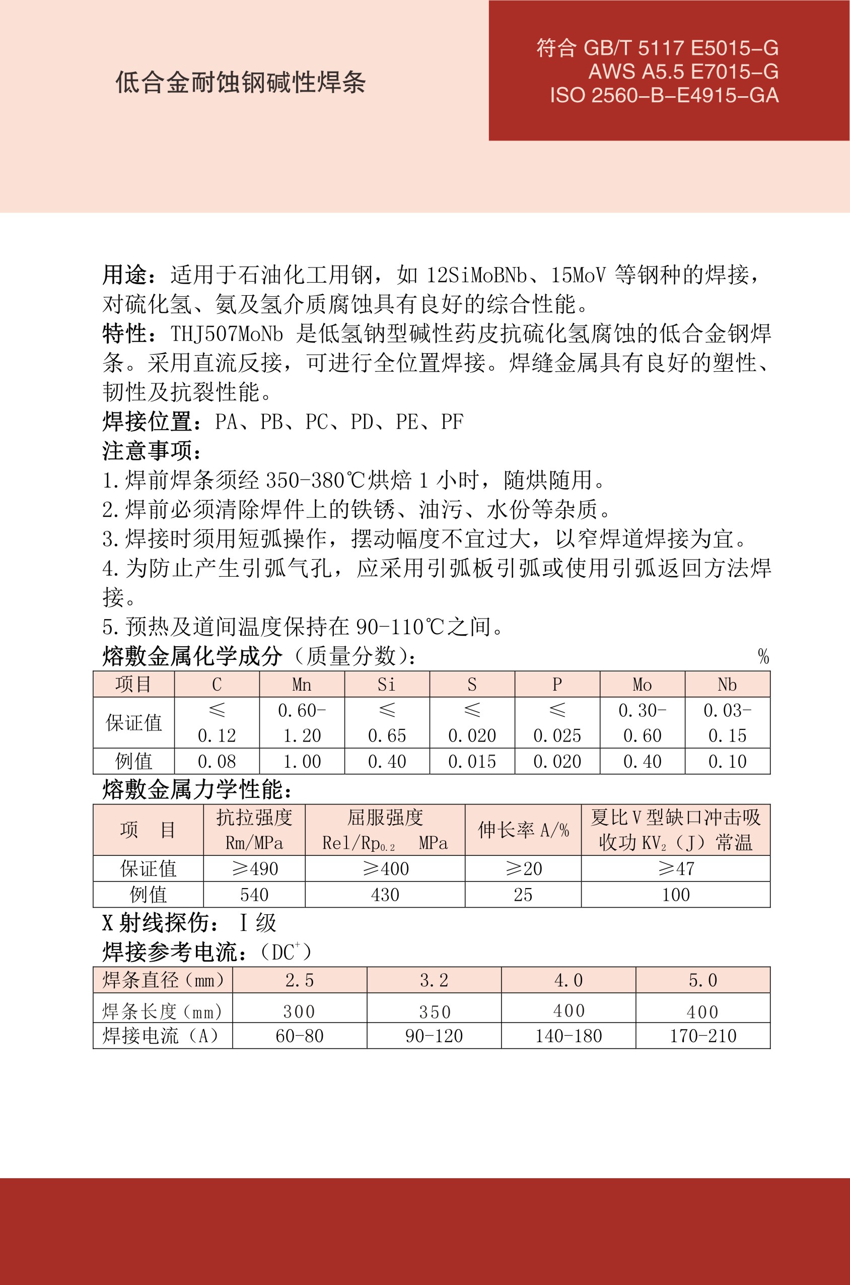 THJ507MoNb低合金钢焊条E7015-G焊条