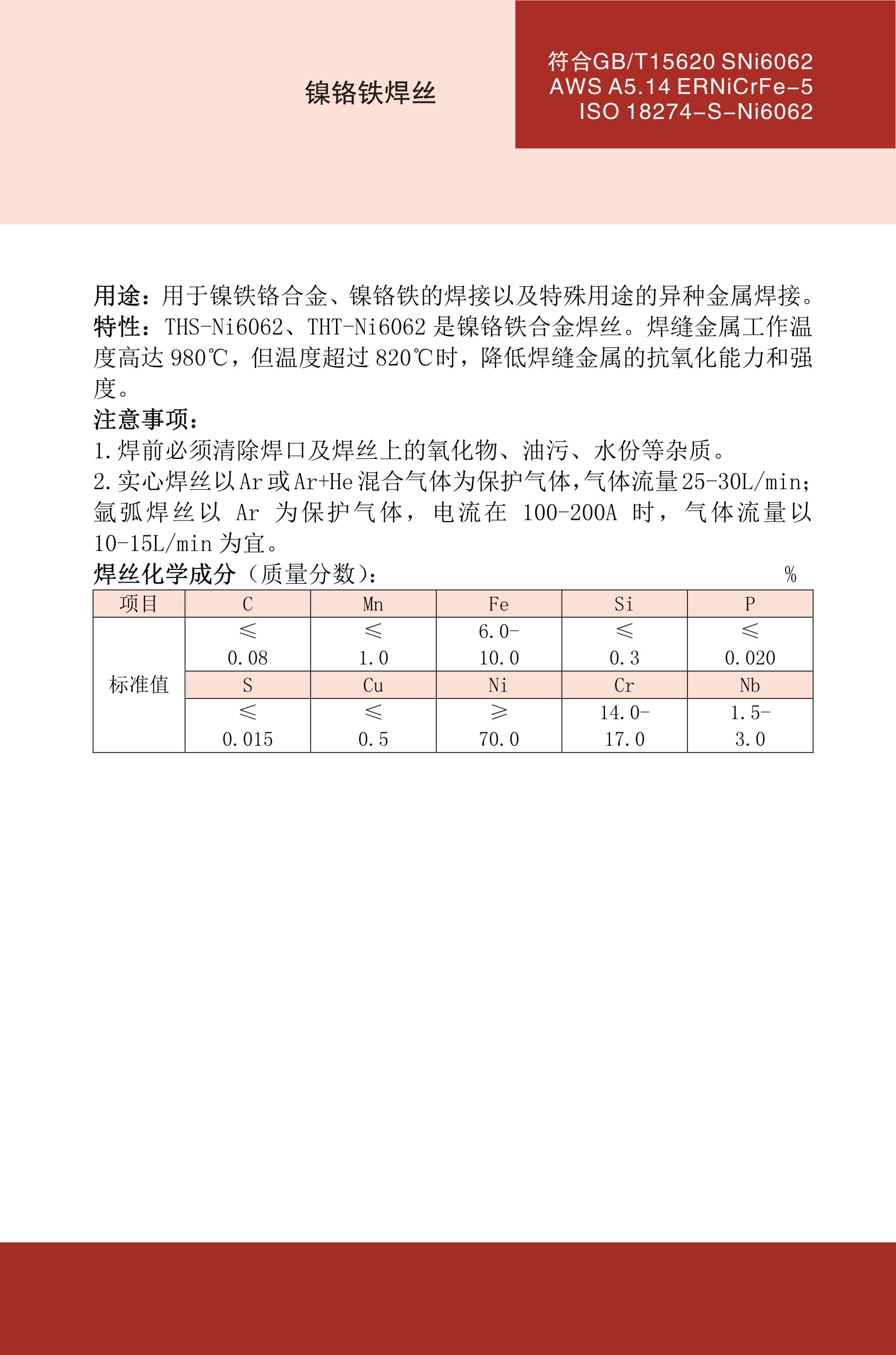 THT-Ni6062镍基焊丝ERNiCrFe-5焊丝