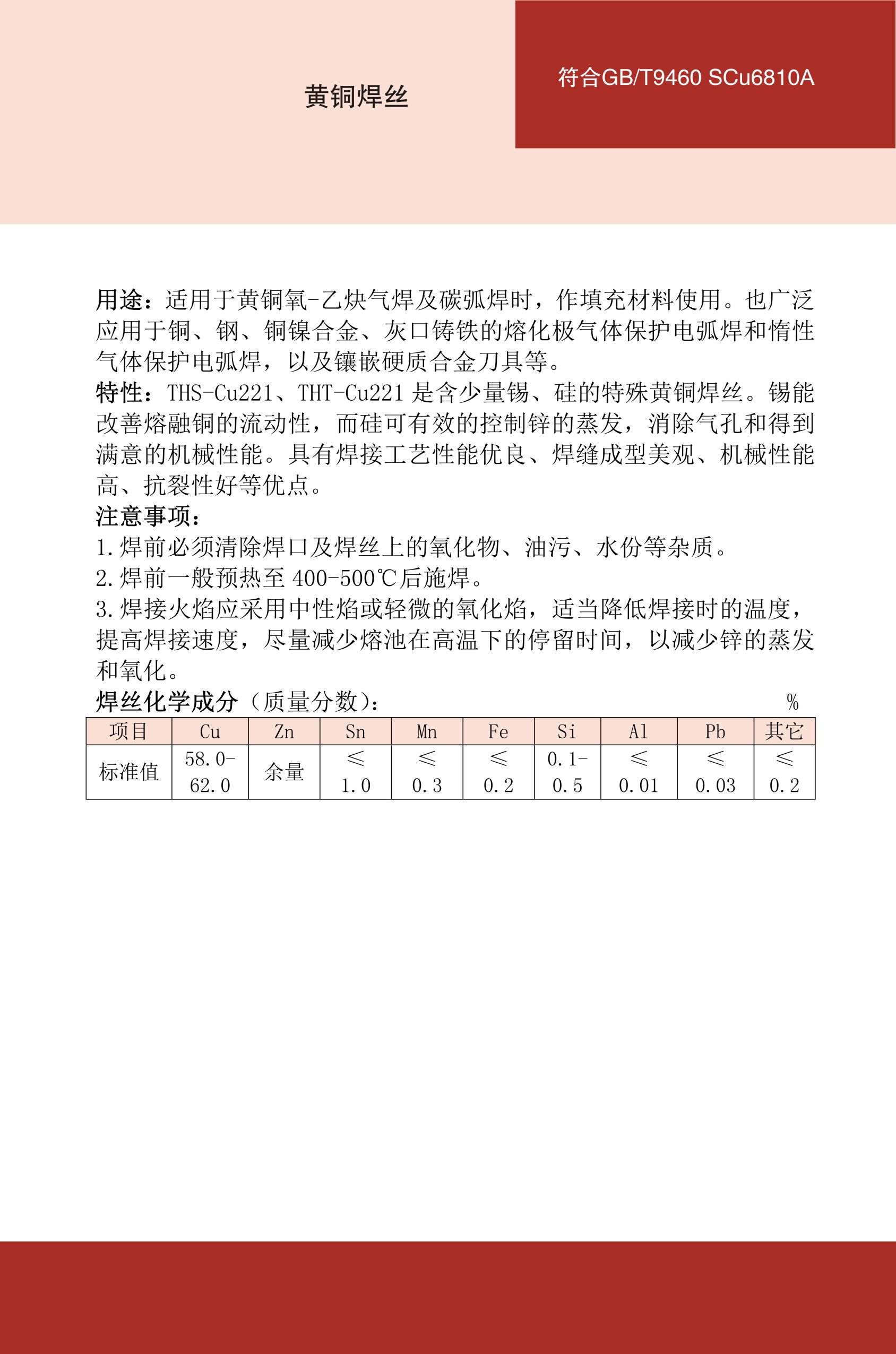 浏览次数:3THT-Cu221黄铜焊丝SCu6810A铜焊丝 |