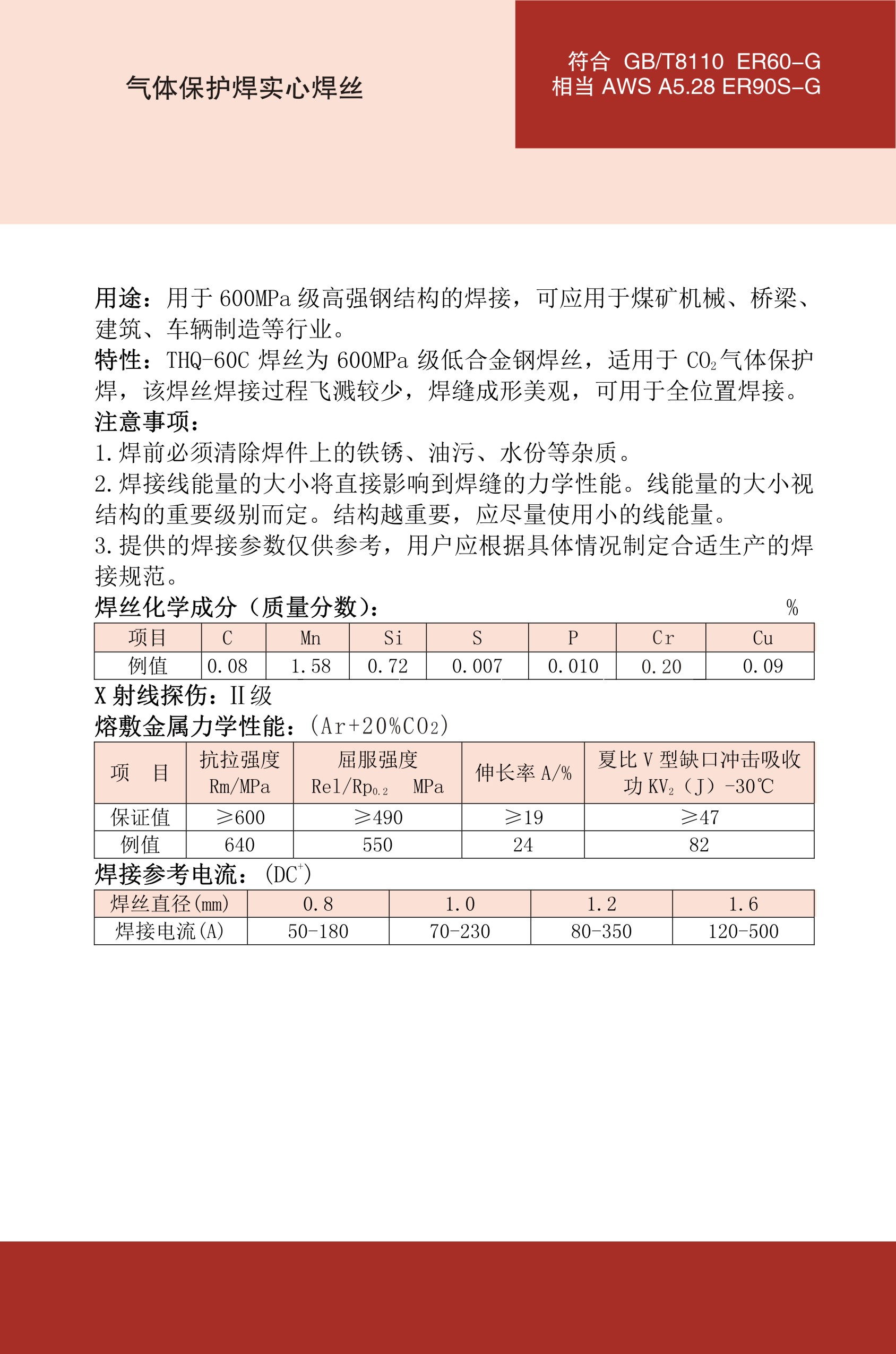 THQ-60C低合金钢焊丝ER90S-G焊丝