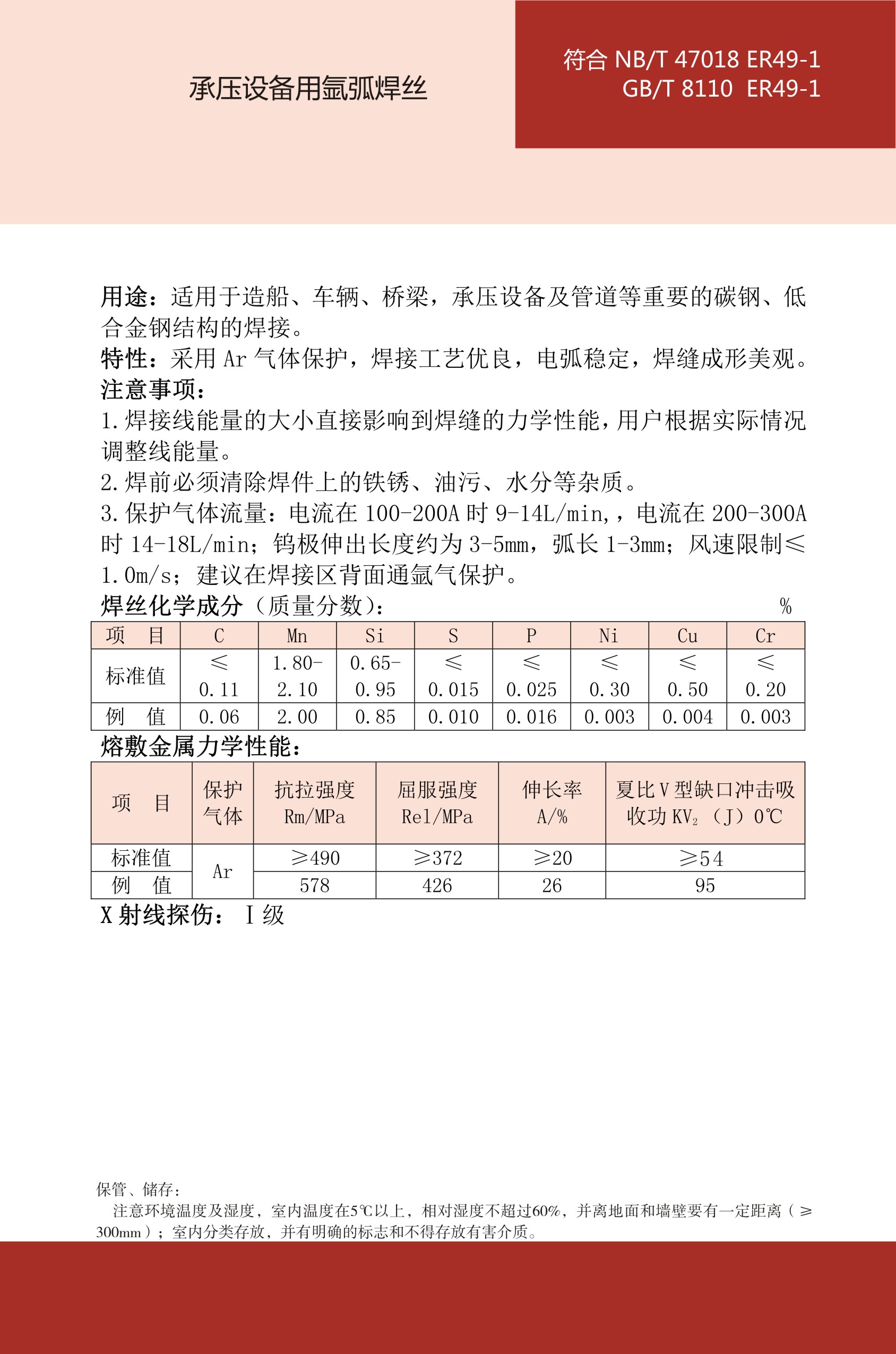 THT49-1(Y)承压碳钢焊丝ER49-1碳钢焊丝
