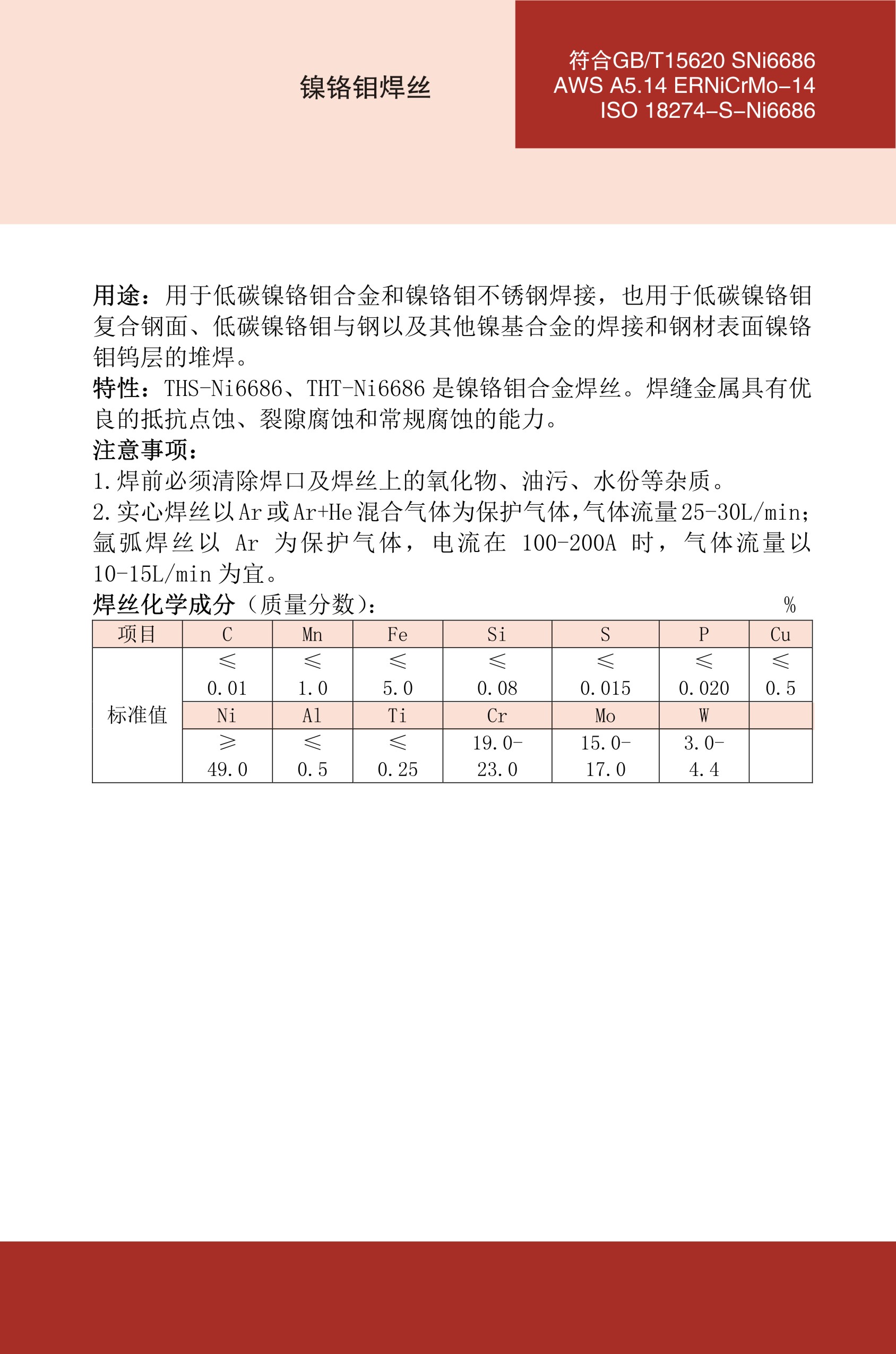 THS-Ni6686镍基焊丝 ERNiCrMo-14焊丝