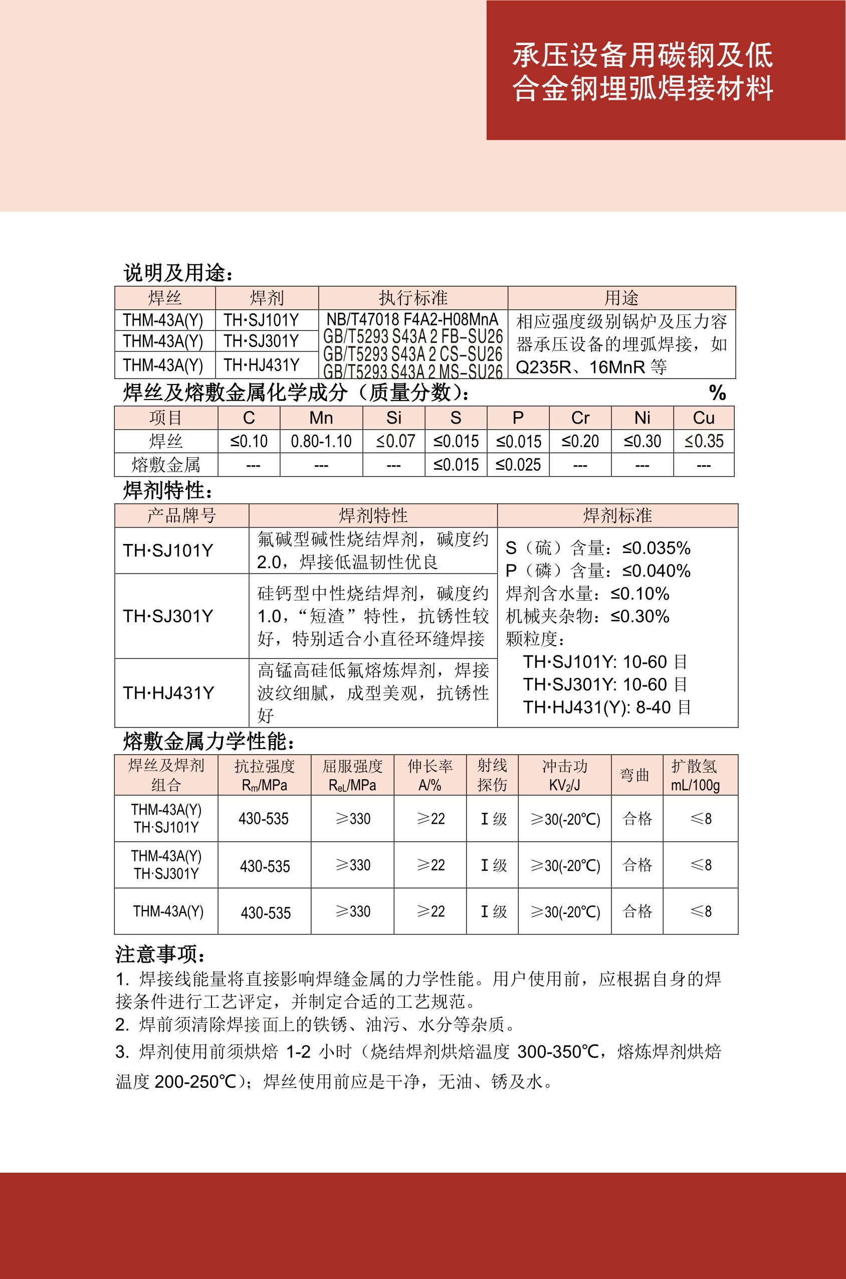 THM-43A(Y)埋弧焊丝TH•HJ431Y焊剂