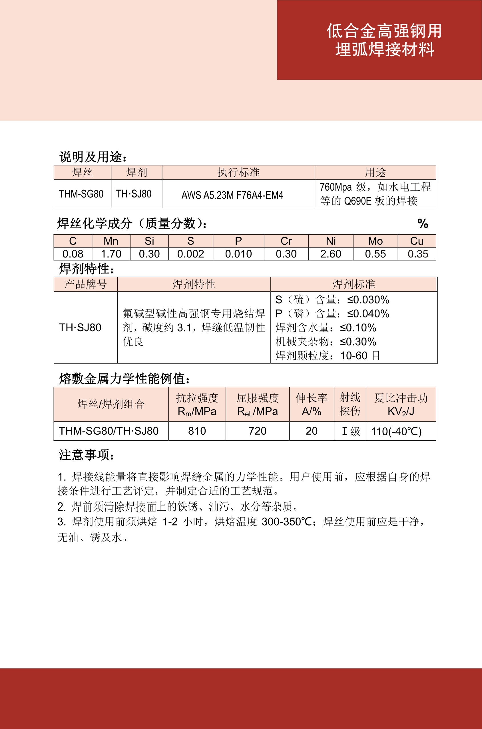 THM-SG80高强钢埋弧焊丝TH•SJ80焊剂