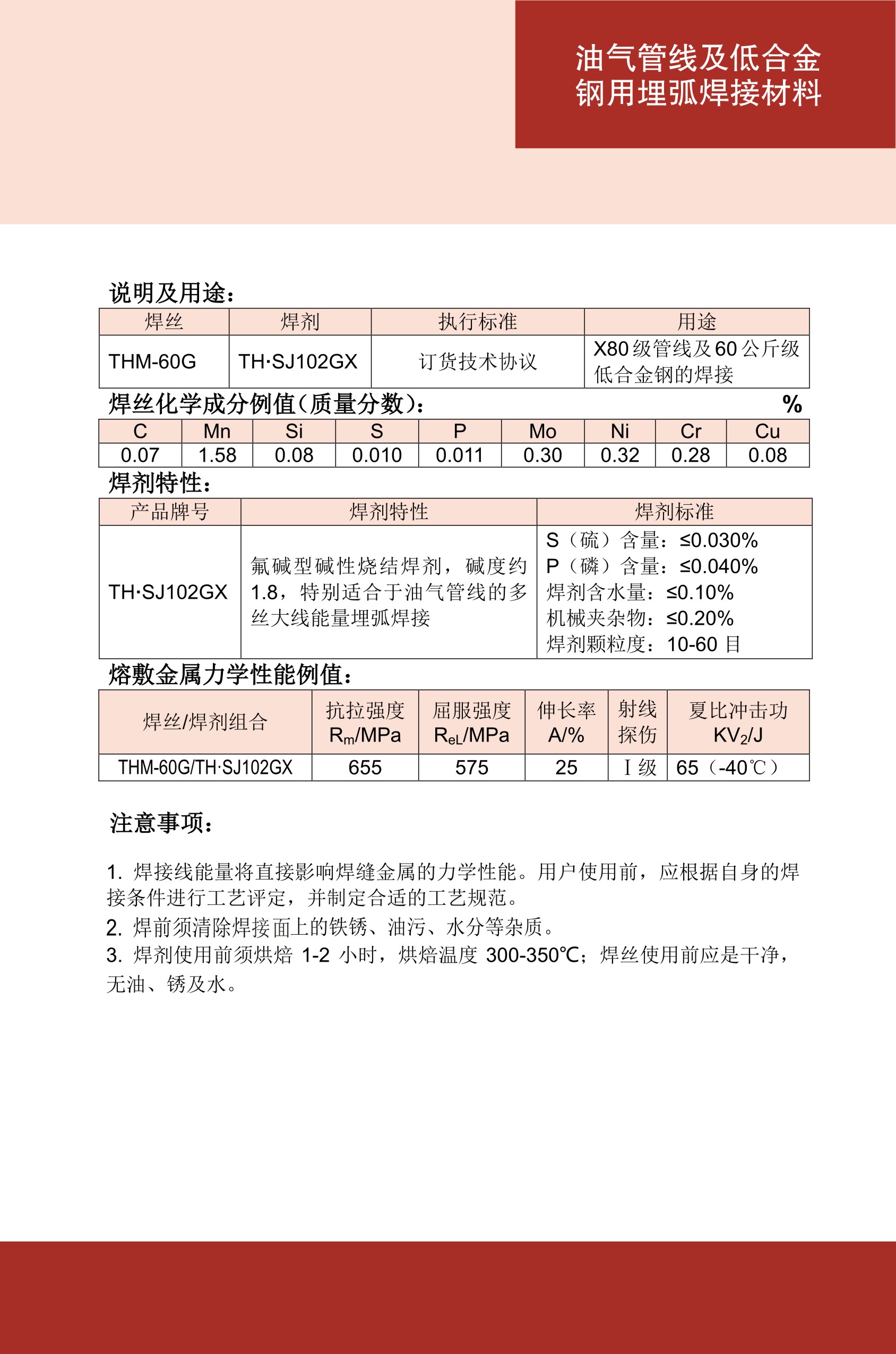 THM-60G管线钢埋弧焊丝TH•SJ102GX焊剂