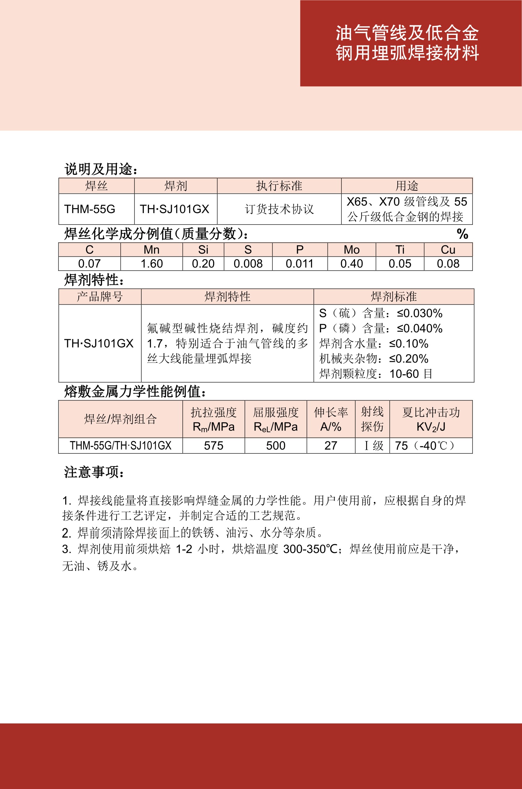 THM-55G管线钢埋弧焊丝TH•SJ101GX焊剂