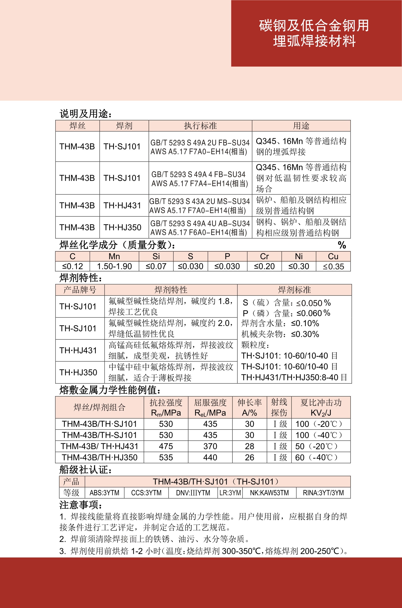 THM-43B埋弧焊丝TH•HJ350焊剂
