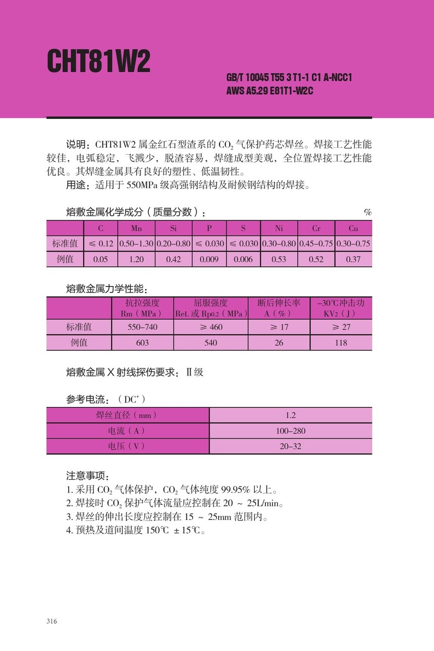 CHT81W2药芯焊丝E81T1-W2C药芯焊丝