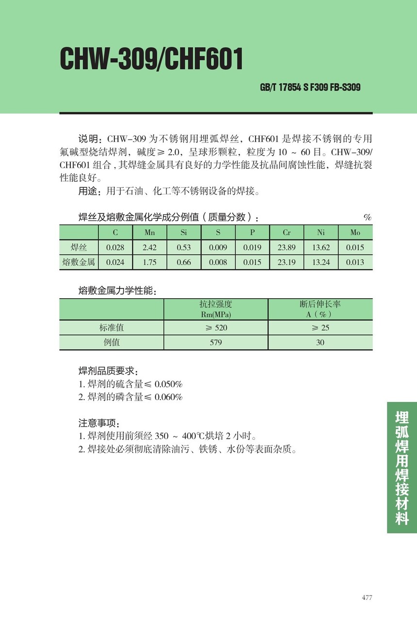 CHW-309不锈钢埋弧焊丝CHF601焊剂