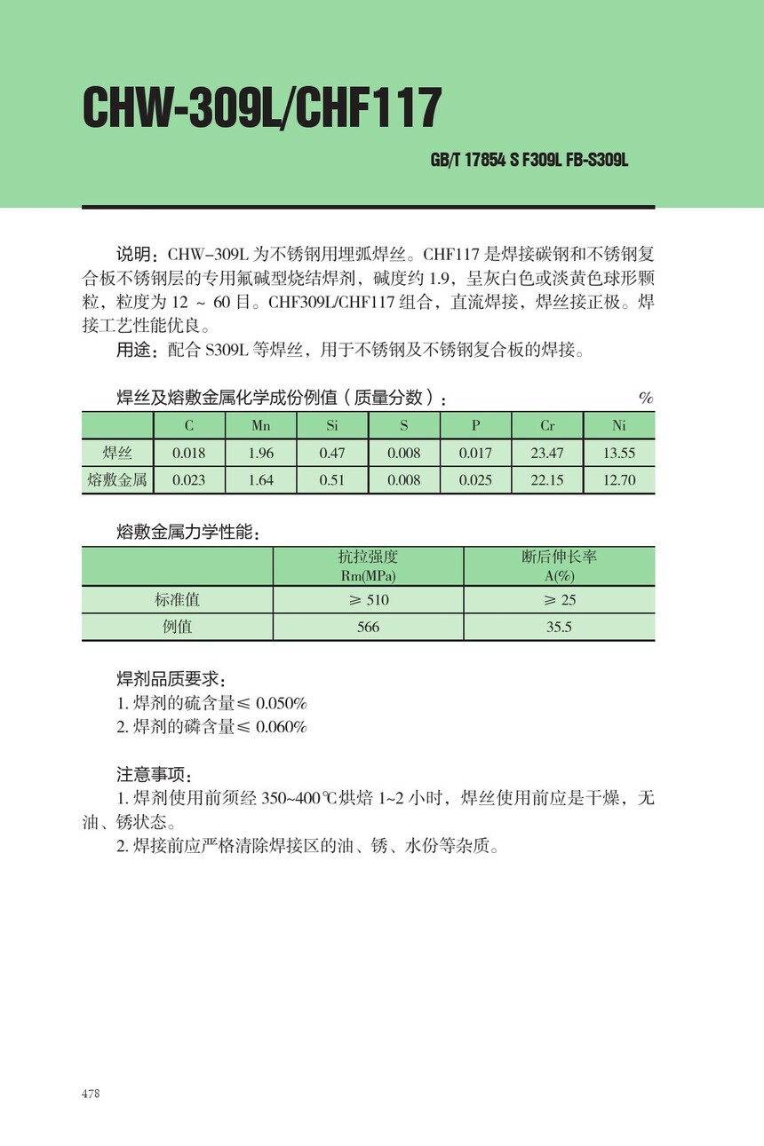 CHW-309L不锈钢埋弧焊丝CHF117焊剂