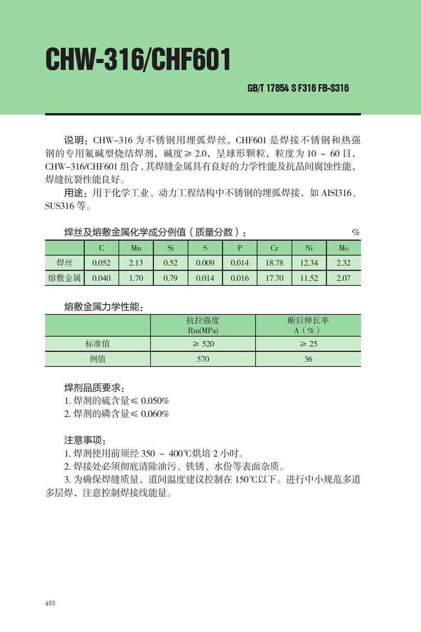 CHW-316不锈钢埋弧焊丝CHF601焊剂