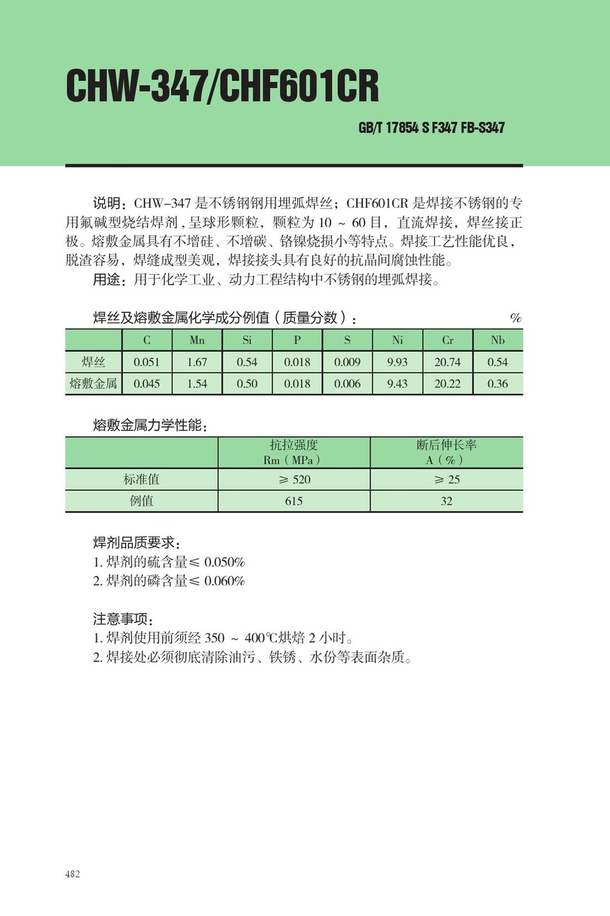 CHW-347不锈钢埋弧焊丝CHF601CR焊剂