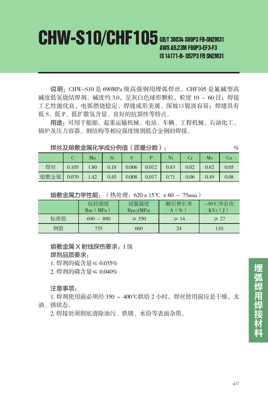 CHW-S10高强钢埋弧焊丝CHF105焊剂