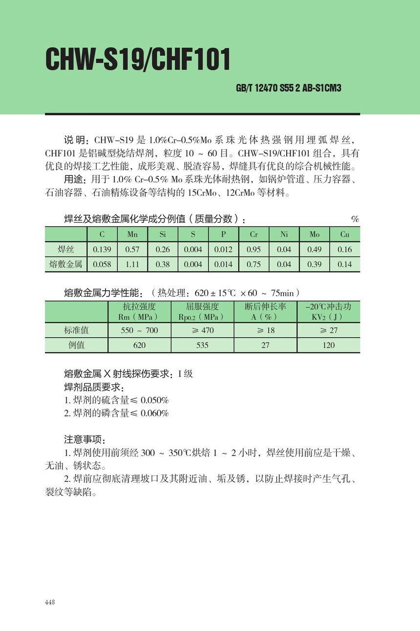 CHW-S19耐热钢埋弧焊丝CHF101焊剂