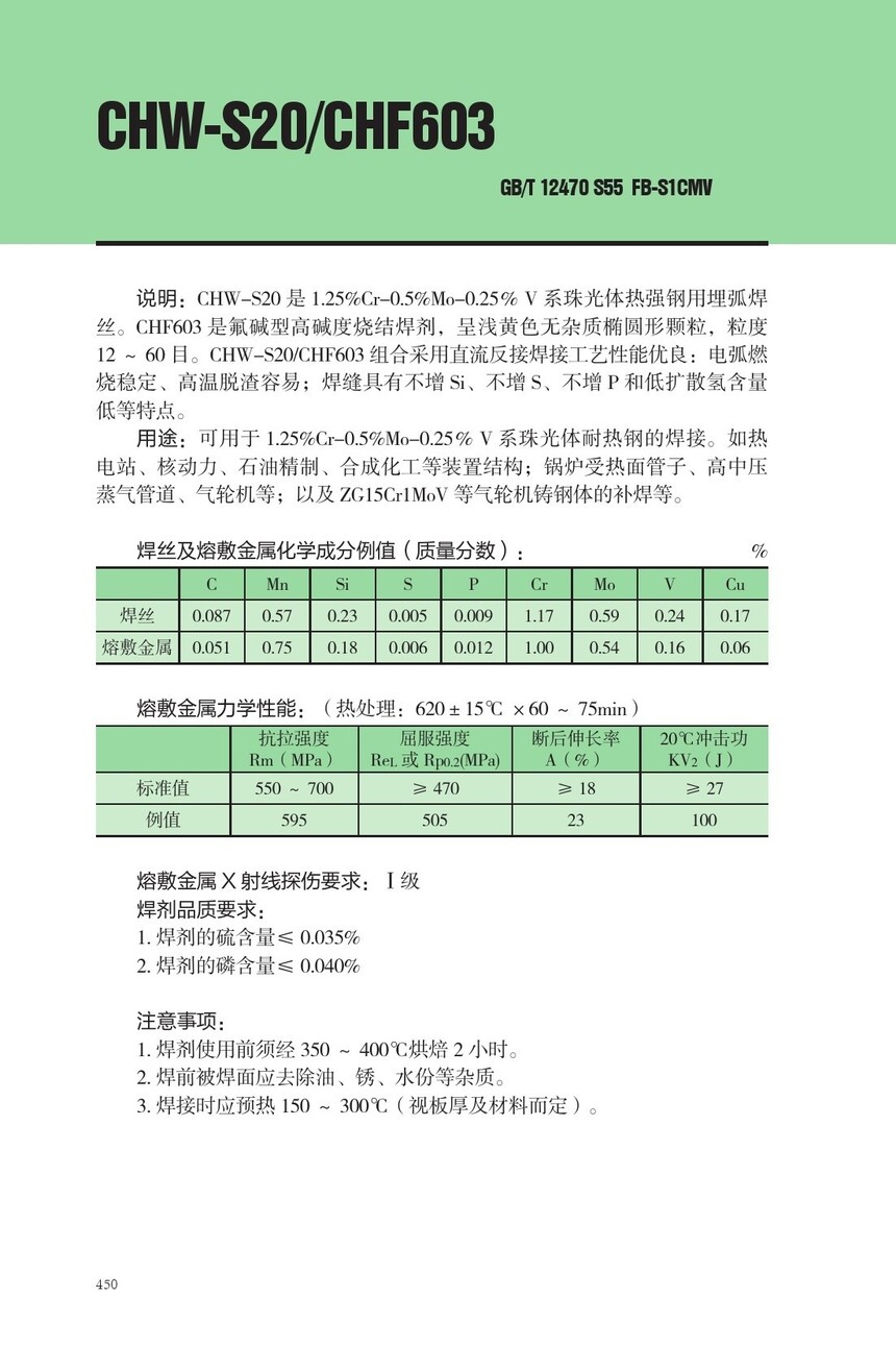 CHW-S20耐热钢埋弧焊丝CHF603焊剂
