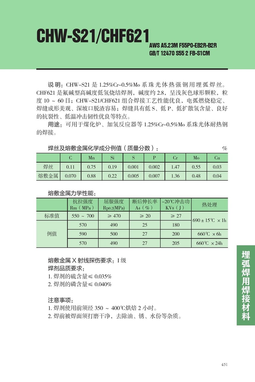 CHW-S21热强钢埋弧焊丝CHF621焊剂