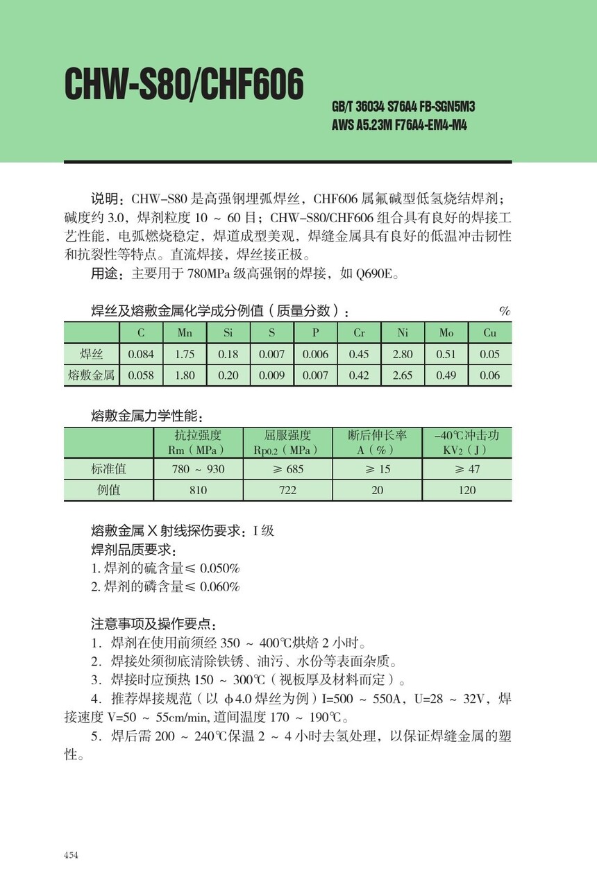 CHW-S80高强钢埋弧焊丝CHF606焊剂