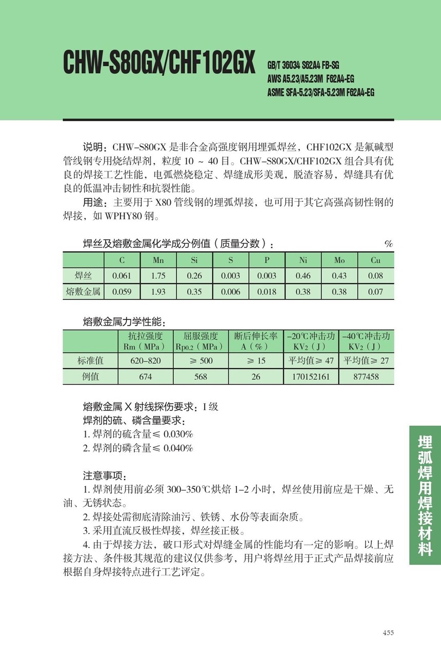 CHW-S80GX高强度钢埋弧焊丝CHF102GX焊剂