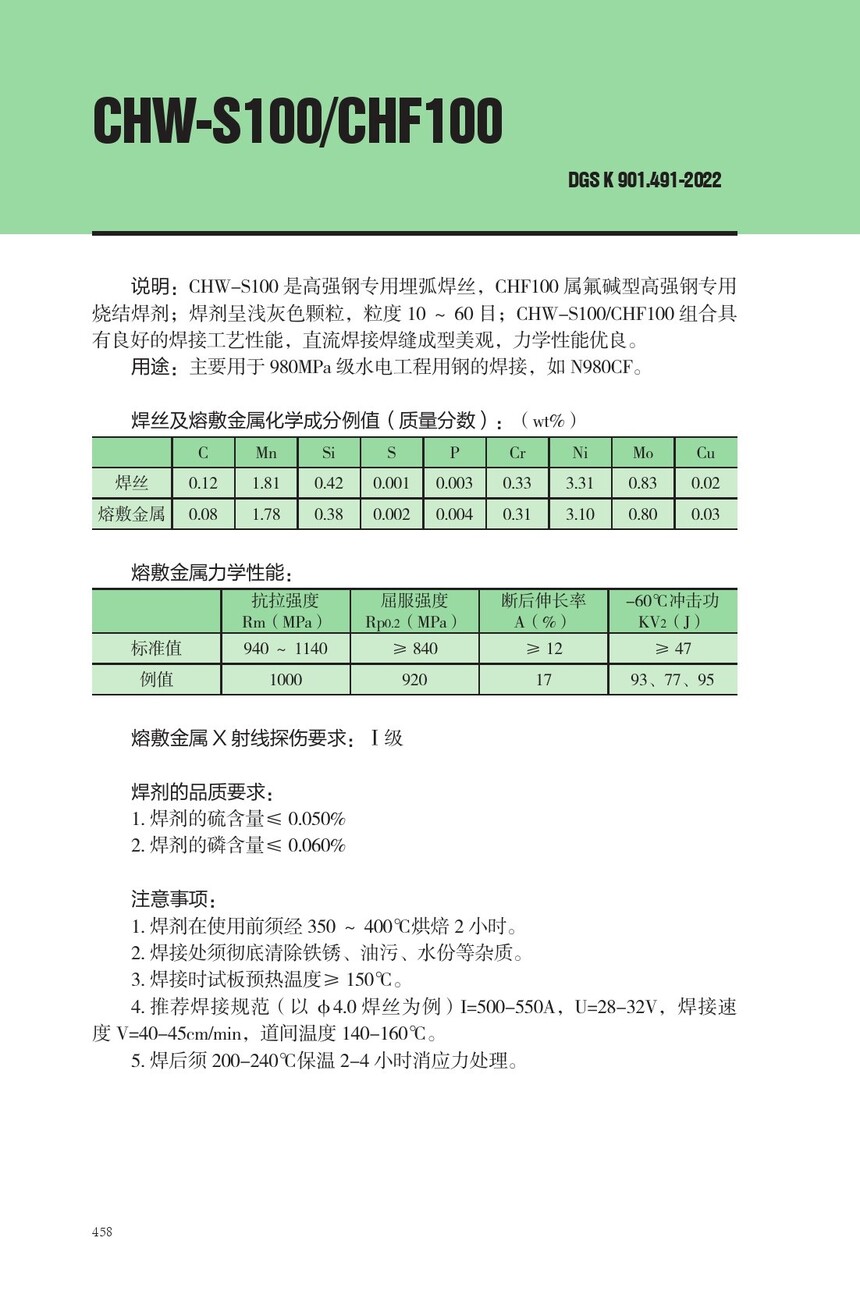 CHW-S100高强钢埋弧焊丝CHF100焊剂