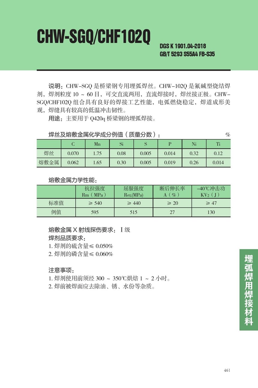 CHW-SGQ桥梁钢埋弧焊丝CHF102Q焊剂