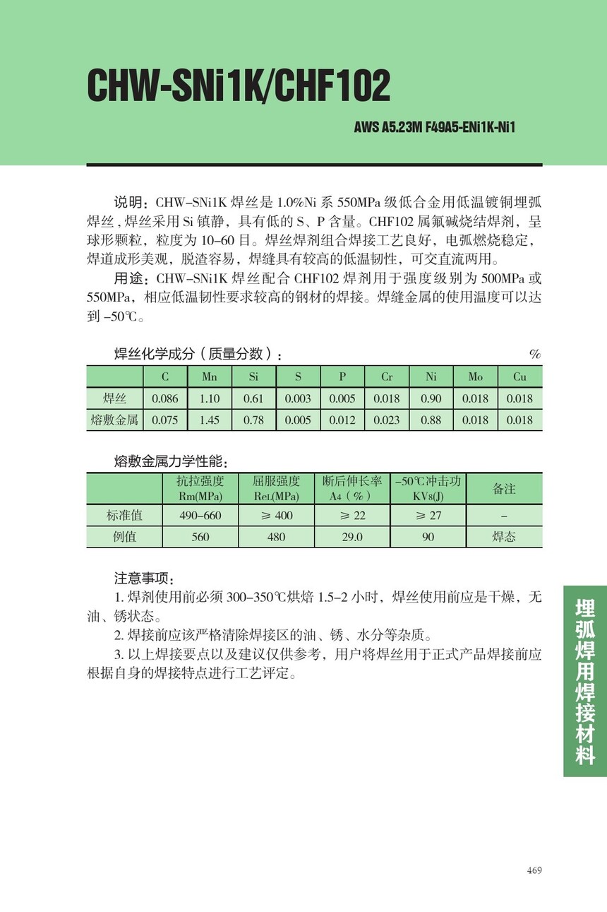 CHW-SNi1K埋弧焊丝CHF102焊剂