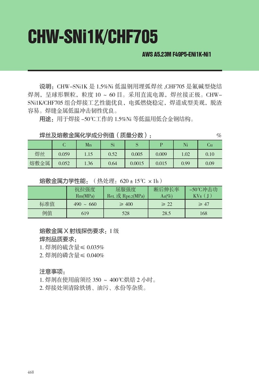 CHW-SNi1K埋弧焊丝CHF705焊剂