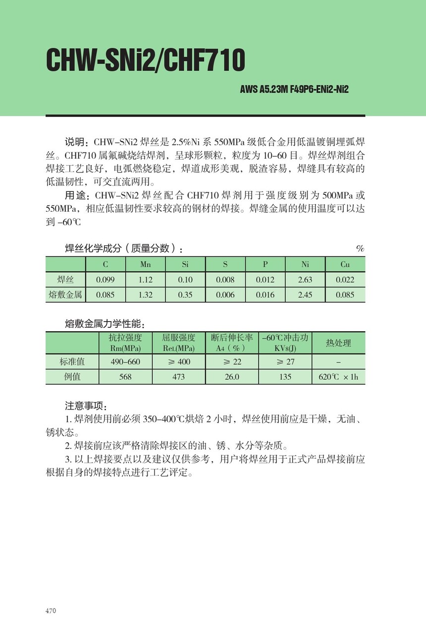CHW-SNi2埋弧焊丝CHF710焊剂