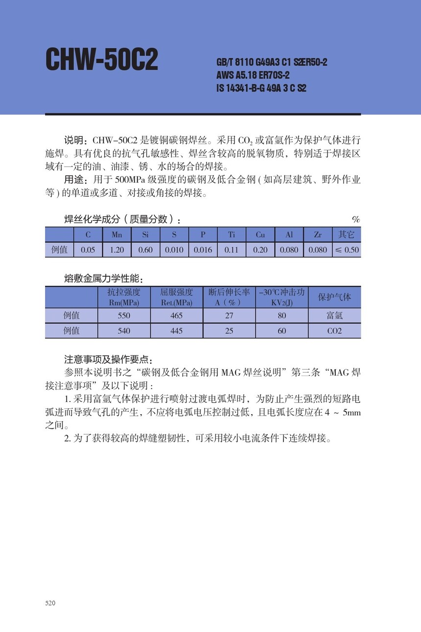 CHW-50C2碳钢焊丝ER70S-2焊丝