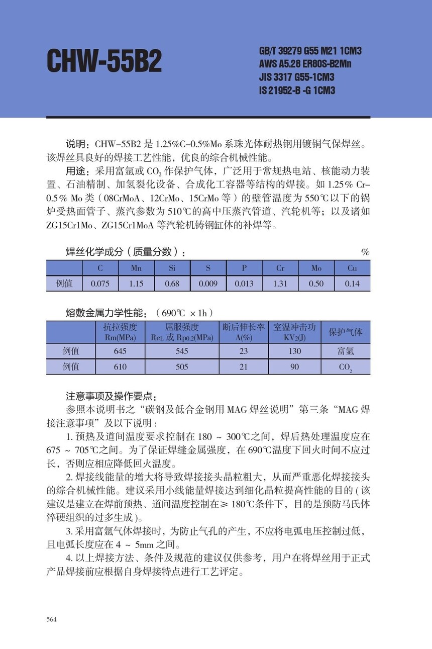CHW-55B2耐热钢焊丝ER80S-B2Mn焊丝