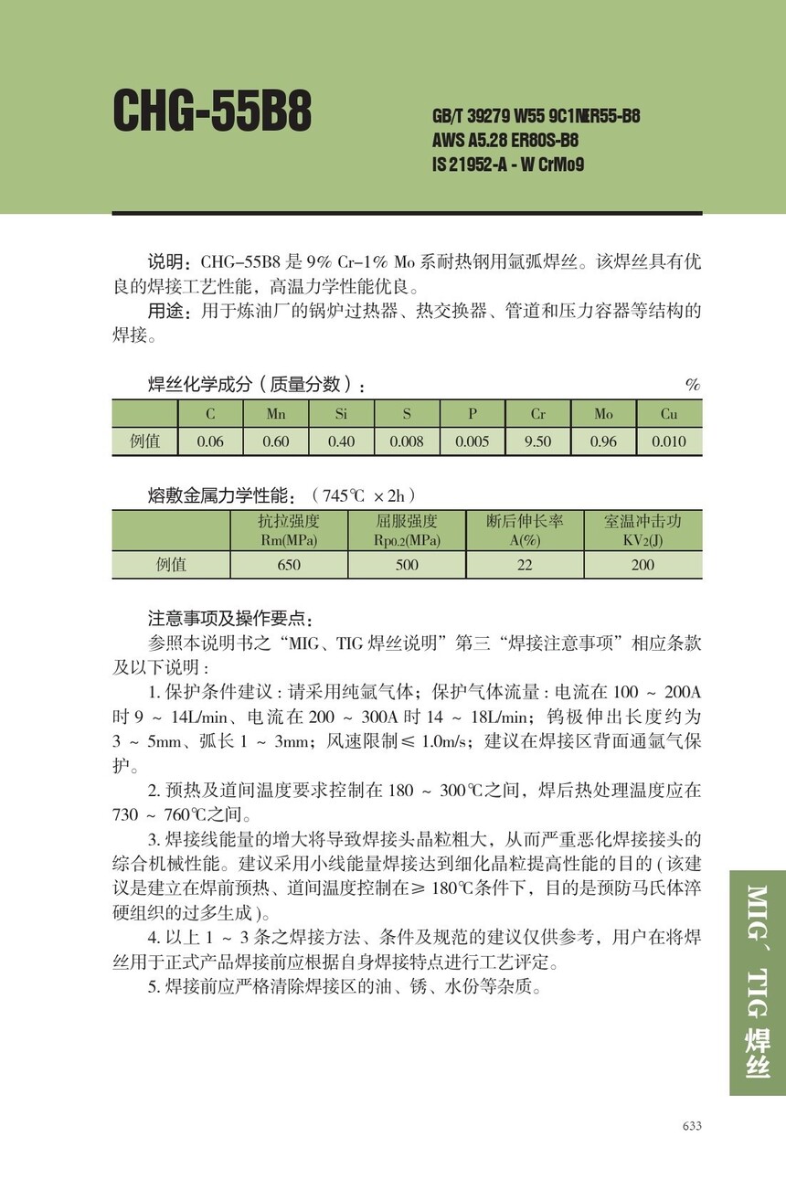 CHG-55B8耐热钢焊丝ER80S-B8焊丝